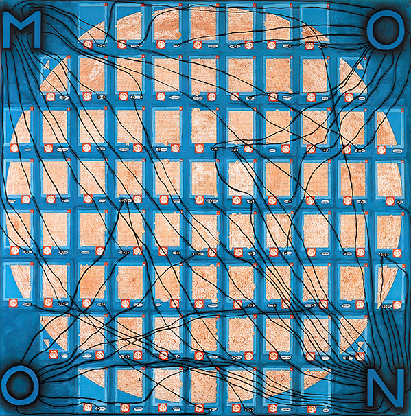 Includes all the pages of a small moon atlas. Title : MOONYear : 1989Medium : acrylics and collage on canvasSize : ± 150 x 150 cm